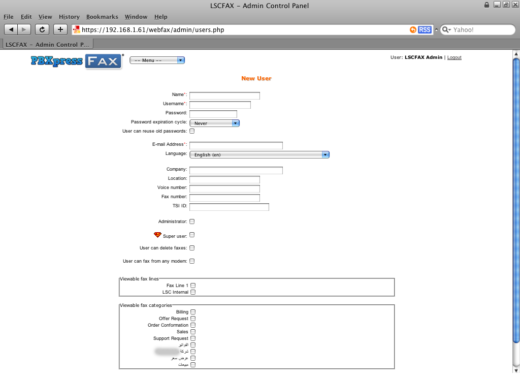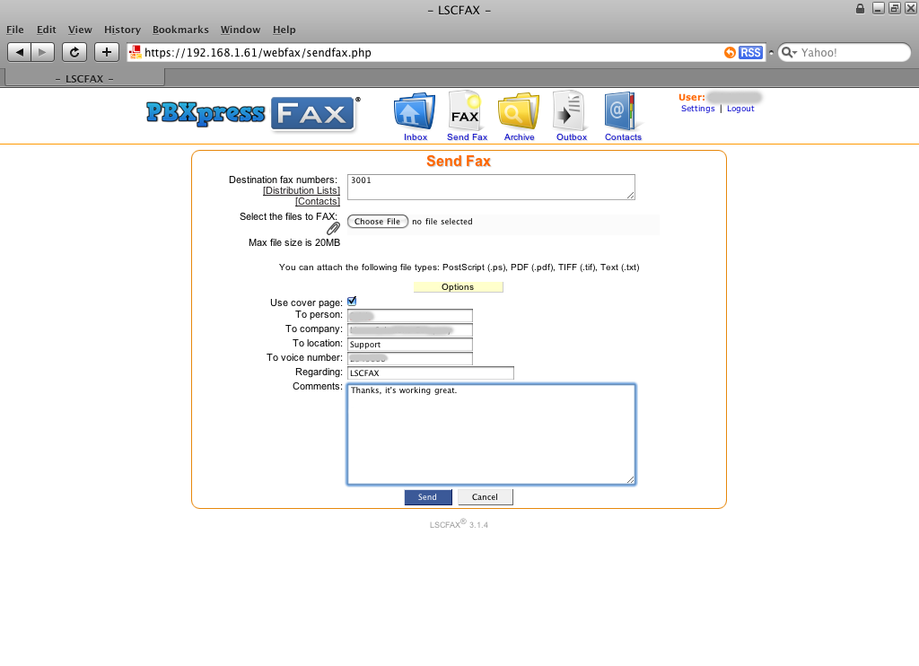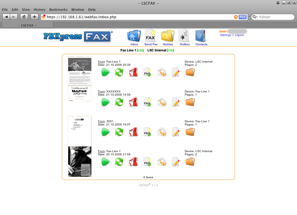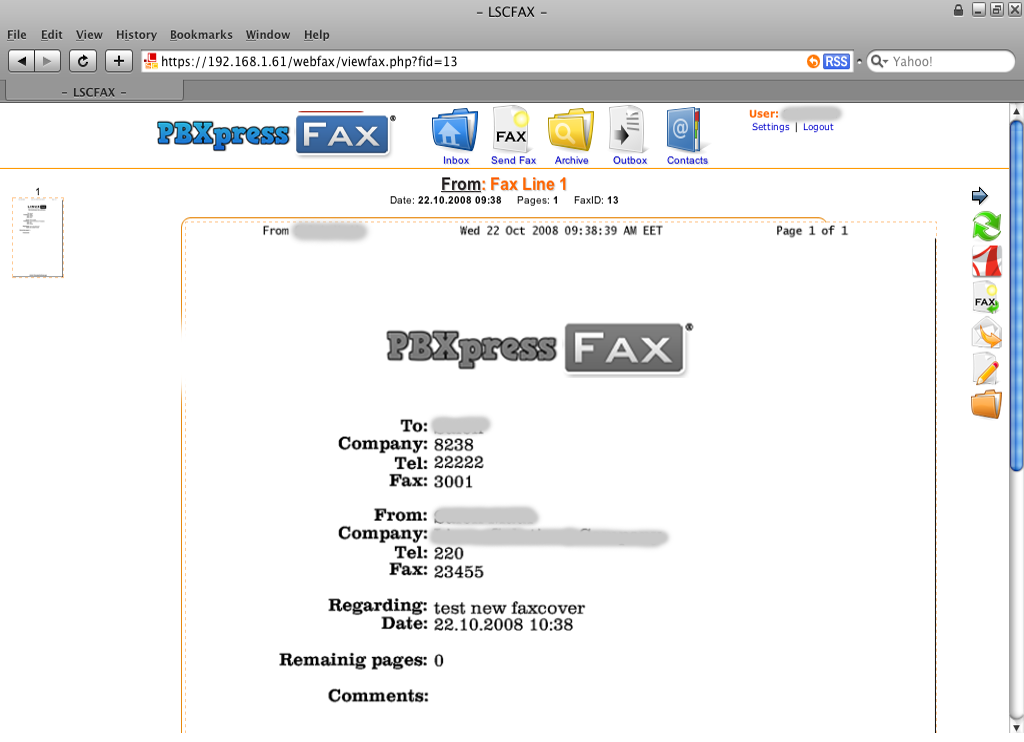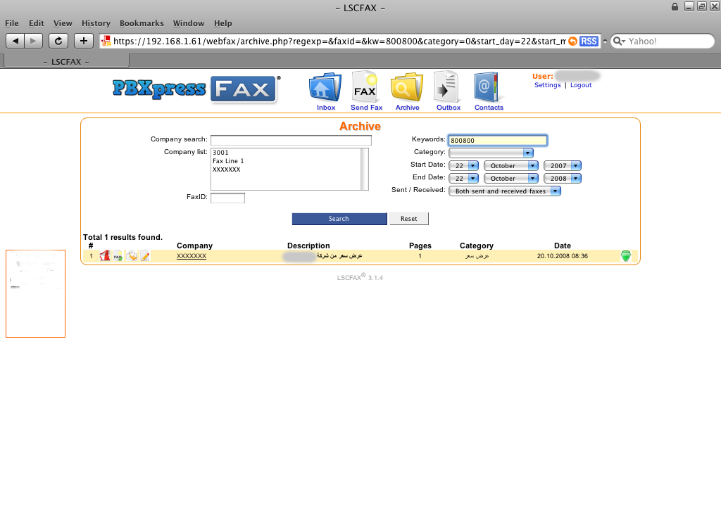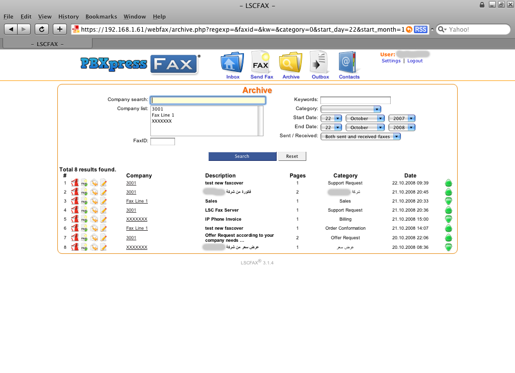 • Fax archive - search your fax archive for received and sent faxes by company, date, category, and keyword.