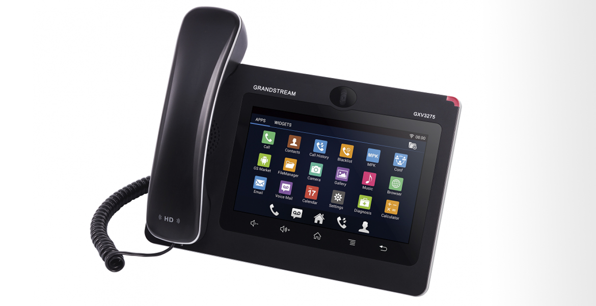 The GXV3275 IP Video Phone for Android™ delivers a powerful voice, video and multimedia business communications experience to keep workers in-touch and up-to-date. This one-of-a-kind 6-line IP phone features a tablet-like 7 inch touch screen and, in addition to voice calls allows users to keep in touch with co-workers and clients through a variety of video calling platforms (Grandstream’s free IPVideoTalk service in addition to any Android app, such as Skype, Google Hangouts, and more). This IP Video Phone for Android offers full access to the Google Play Store and the millions of Android apps – including powerful business productivity apps like SalesForce1, GoToMeeting, service provider apps and more. Additional features include integrated Bluetooth for pairing of headset and mobile devices for contact book/calendar exchange and call transferring, Gigabit ports, integrated WiFi, and more.
