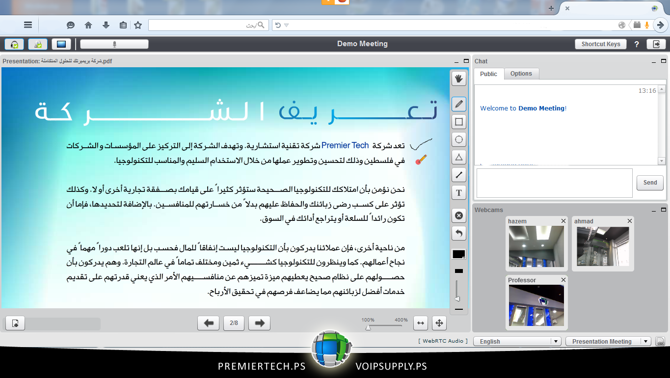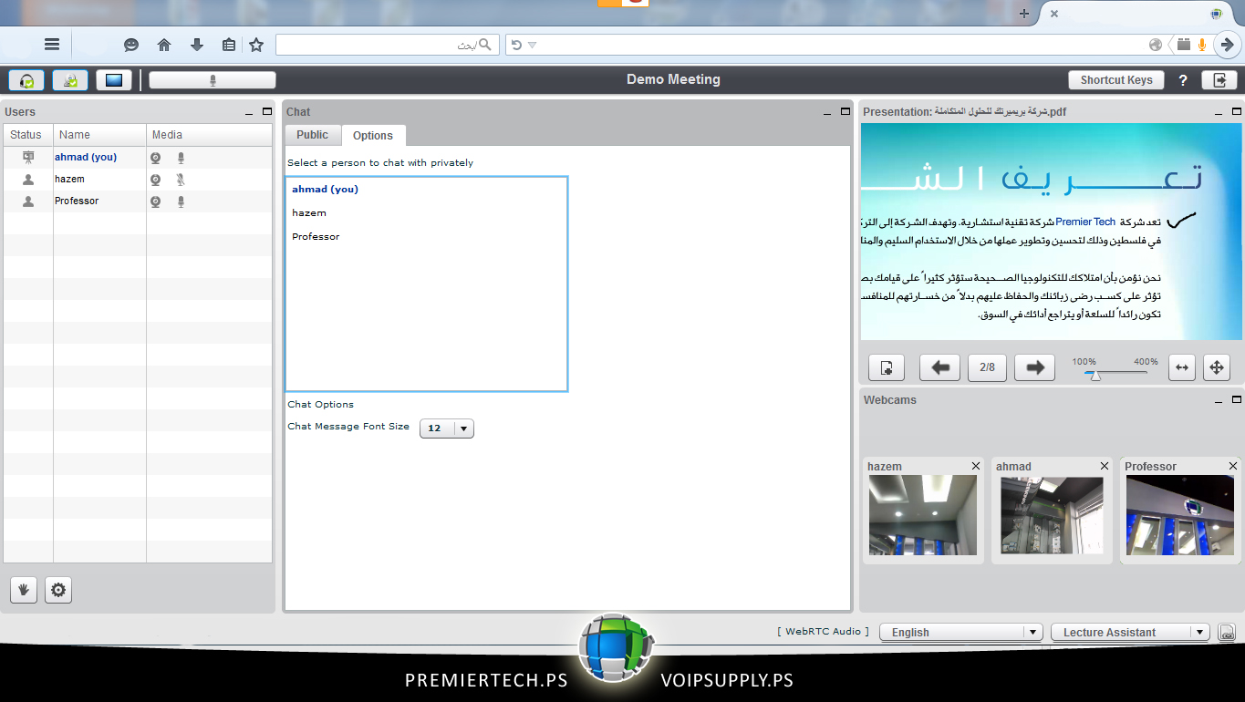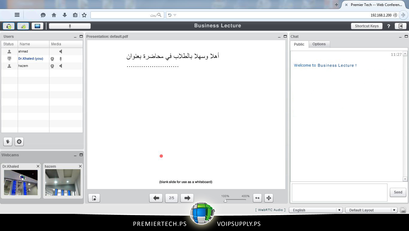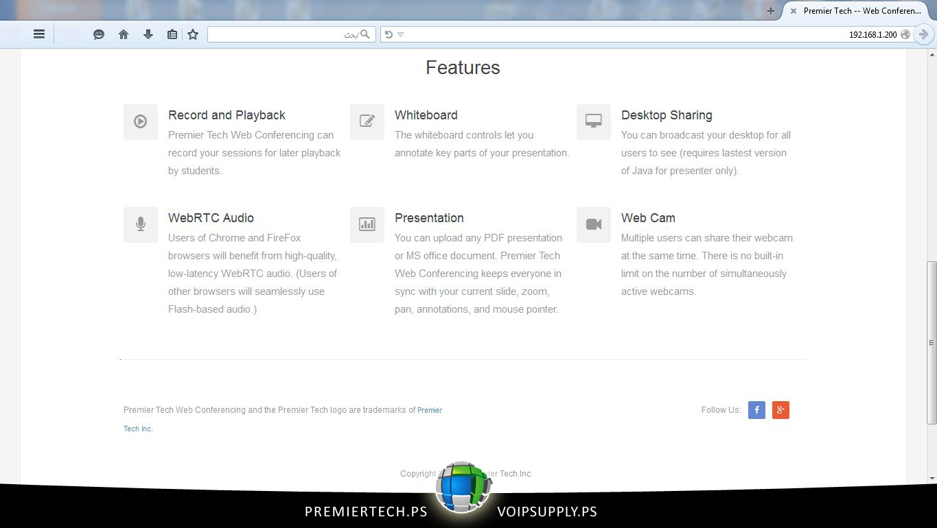 - Integrated VoIP: Web Conferencing System supports voice over IP (VOIP) conferencing out-of-the-box. All your students require are speakers and a microphone to participate.