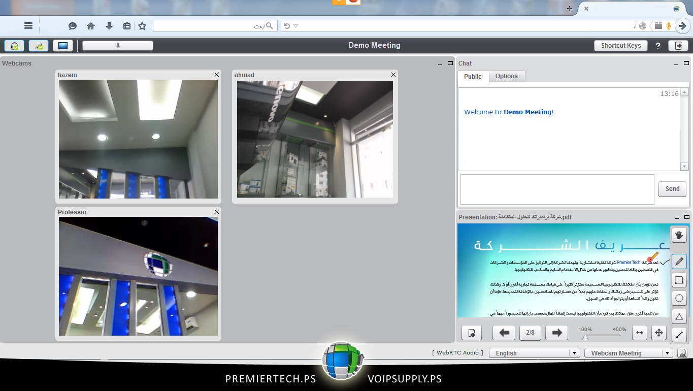 - Web Cam: Multiple users can share their webcam at the same time. There is no built-inlimit on the number of simultaneously active webcams.